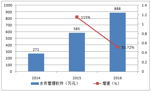 此外,16年年報顯示,水務管理軟硬件系統營業收入同比增長51.72%。雖然目前軟件類收入占比較小,但從14年開發此業務到16年,其營業收入幾乎每年翻倍增長。