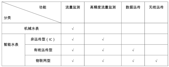 智能水表當中,根據數據遠傳功能又可將其分為三大類:非遠傳型(IC 卡),有線遠傳型(M-Bus 總線),物聯網型(Nb-loT)。
