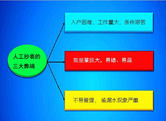 (2) 由于抄表的數(shù)據(jù)量比較龐大,容易產(chǎn)生錯、漏等現(xiàn)象;