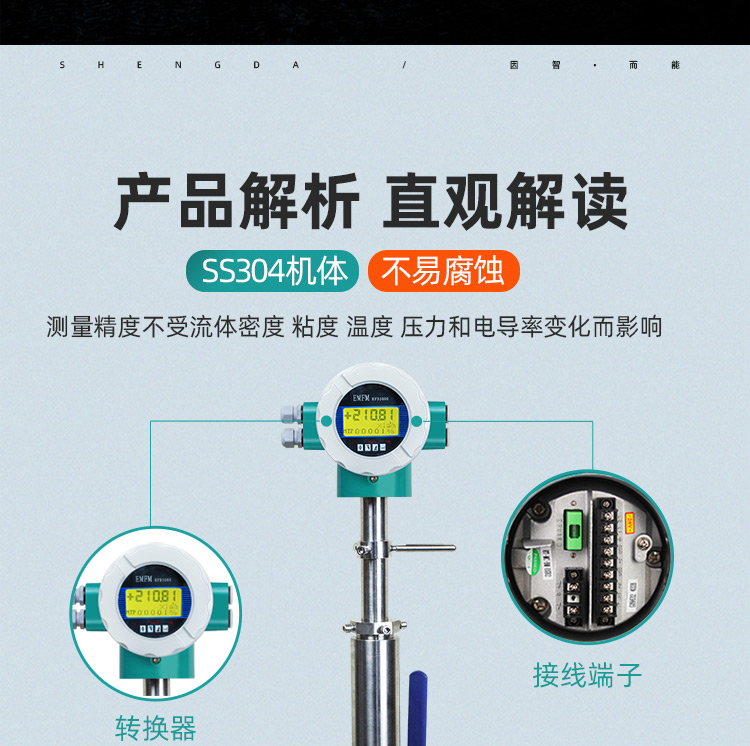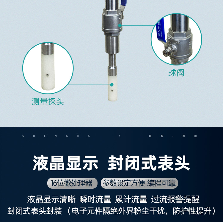 5. 智能顯示與輸出:配備LCD液晶顯示器,支持中英文界面,實時顯示瞬時流量、累計流量及報警信息;輸出4~20mA、0~5kHz及RS485通訊信號。