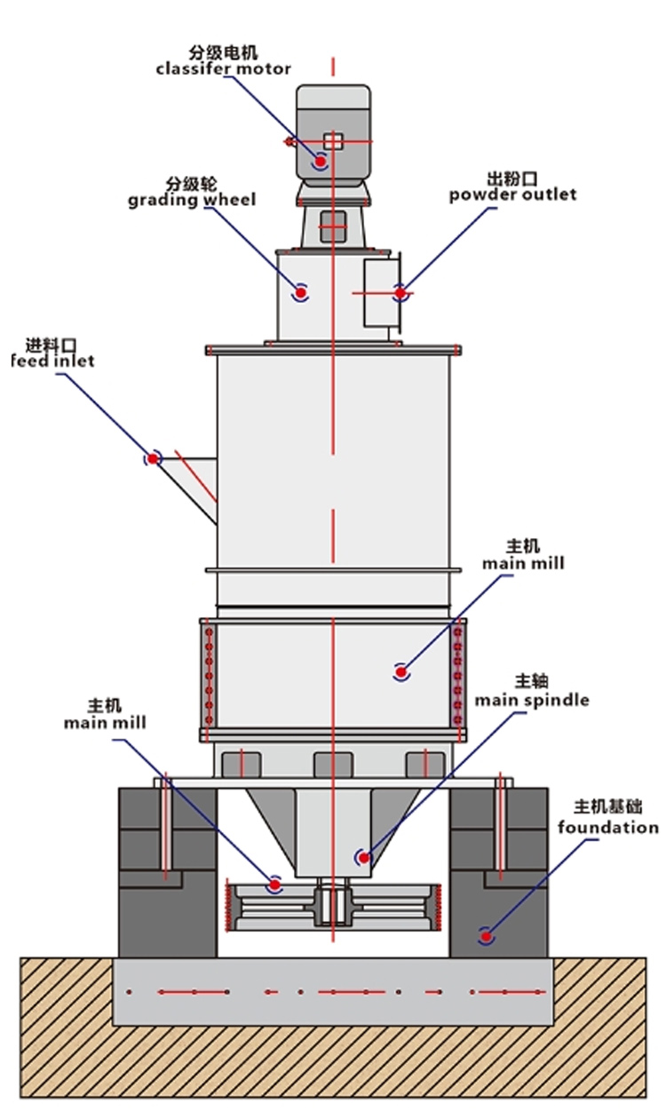3.磨耗小、消震性好:磨圈采用特殊耐磨高鉻合金制造,使用壽命長。主機底座采用整體鑄鋼件結構,結構強度高,消震性能好。