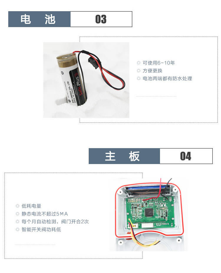4.低功耗設計:采用微功耗技術,靜態工作電流≤5μA,內置電池可使用6-10年。