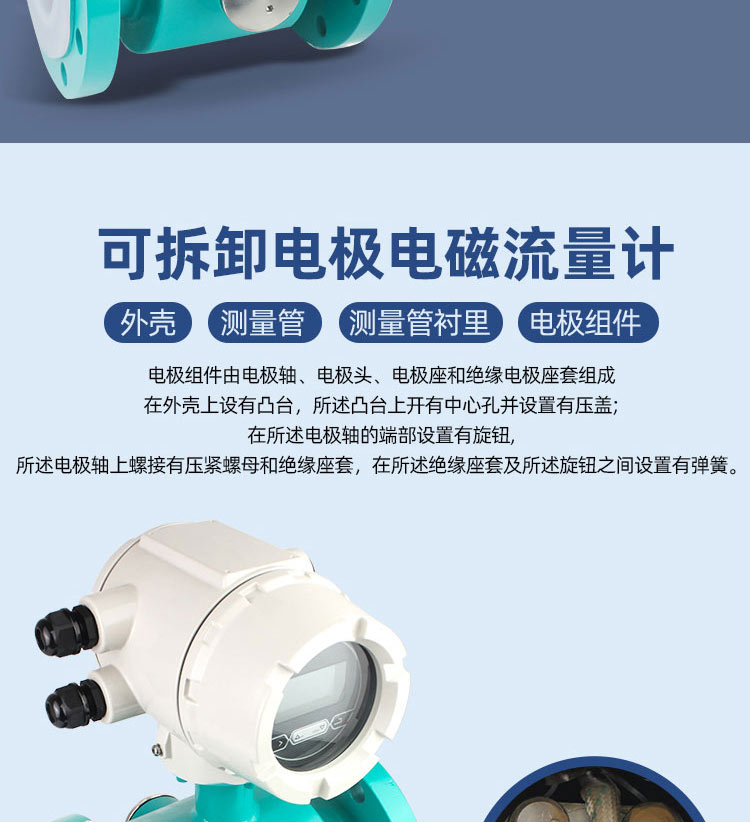 可拆卸電極電磁流量計,智能電磁流量計,分體式電磁流量計,可拆卸電極電磁流量計是一種創新型智能流量儀表,采用獨特的可拆卸電極設計,方便用戶進行電極清洗和維護,**保證測量精度