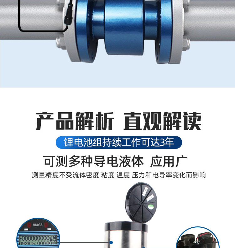 NB遠傳一體鋰電電磁流量計由傳感器、轉換器和NB-IoT通訊模塊組成,是基于電磁流量計技術全新升級的智能化流量計量儀表。該產品采用創新的結構設計和快裝無焊接工藝,磁場分布更合理,測量更精確。內置鋰電池組可提供長達3-6年的持續工作能力,結合NB-IoT低功耗廣域通信技術,實現了真正意義上的無線遠傳計量。無論在苛刻的工業環境還是無外部電源的野外場合,都能穩定可靠地運行,為水利灌溉、城市供水等領域的流量監測提供了完善的解決方案。