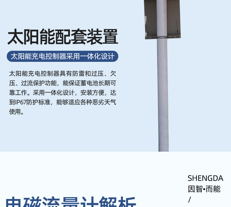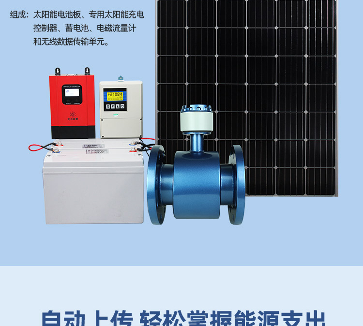 太陽能分體智能遠傳電磁流量計具有無線數據遠傳的流量計量和控制系統,主要應用于廠區、油田、農田灌溉和市政供水計量等無市電情況下的流量計量和控制